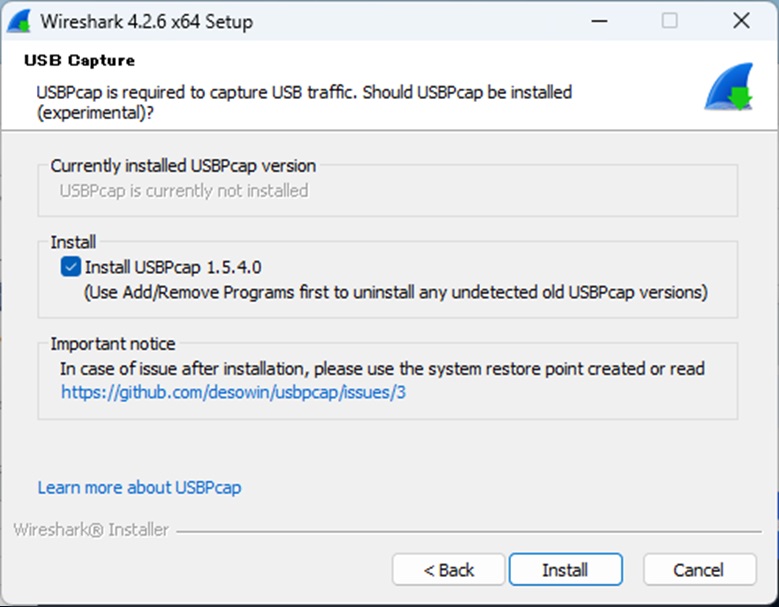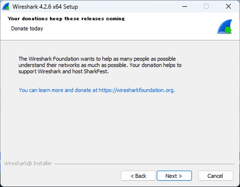 Wiresharkのサイトからインストーラーをダウンロード、実行するだけです。本記事投稿時は、バージョン 4.4.0 がダウンロード出来ましたが、インストールしてみるとUSBキャプチャーが出来なったので、あまり追及することなく、少し前にダウンロードし放置していたバージョン 4.2.6 をインストールしました。